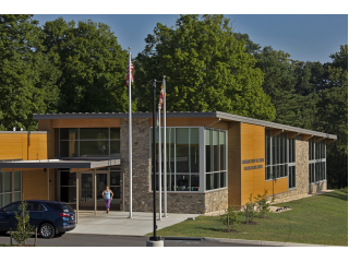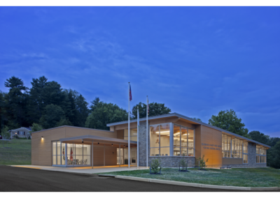 The architectural goal was to design a very simple elegant building infused with a sense of dignity and pride for the small town Western Maryland community. At only 8,500 gross square feet, the design is focused on flexibility, clarity, user comfort and natural daylight. The linear layout of spaces is an “open plan” arrangement “front to back” with as few walls and enclosed rooms as possible. A heavy timber beam system and structural wood deck is exposed in the primary reading areas where clerestory natural daylighting is combined with direct daylight. The onlooker is drawn to the warmth of the materials, and how creatively the designers showed restraint in keeping those materials clean and warm, successfully creating an inviting atmosphere where one could only hope to spend a few quiet hours reading.